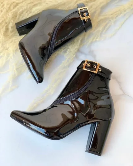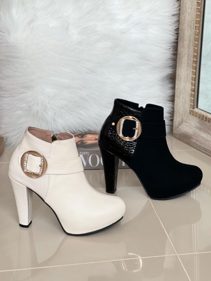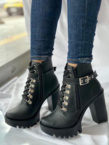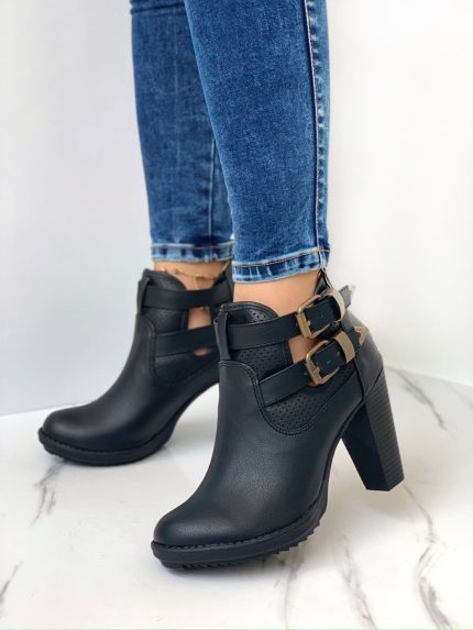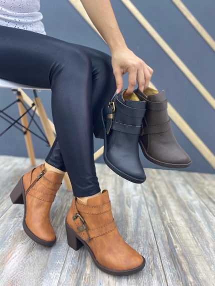 Botines con tacón grueso cierre curvilíneo con una fajita y hebillas
