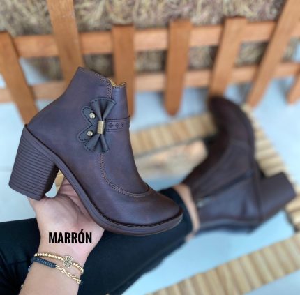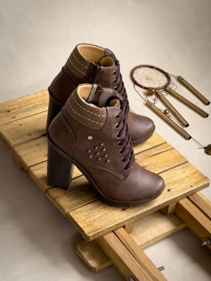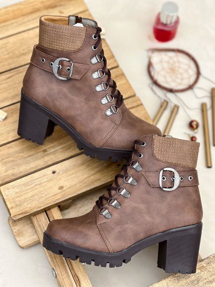 Botas piel boston gamuza con broche cruzado y ojillos al rededor cafe
