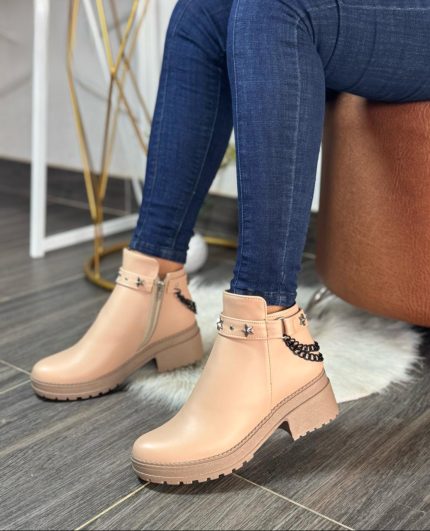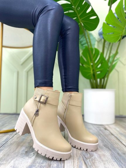 Botas piel boston gamuza altas con zipper y correa al rededor beige