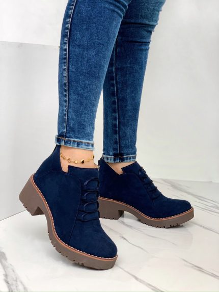 Botas piel boston gamuza con cordones de meter con linea lateral blanco