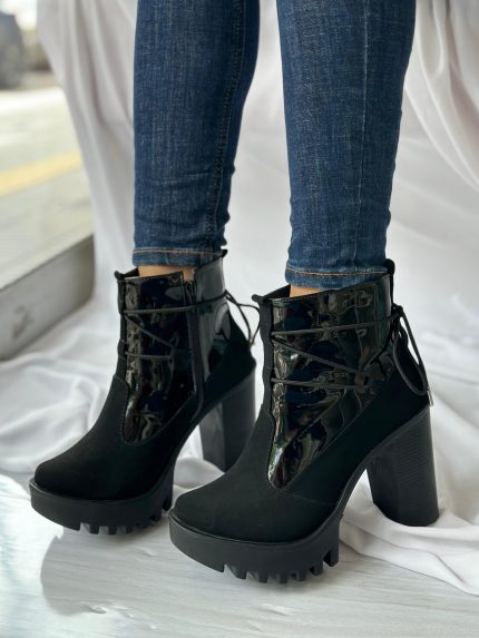 Botas altas gama importada tacón alto cordones frente y ziper lateral negro mate