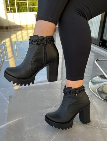 Botas altas gama importada tacón alto cuero ziper trenza rodeando negro