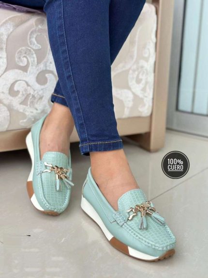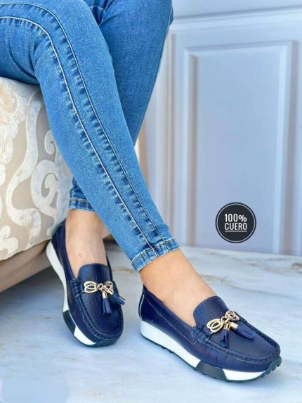 Cuero confort meter textura reptil borlas hebilla mariposa azul