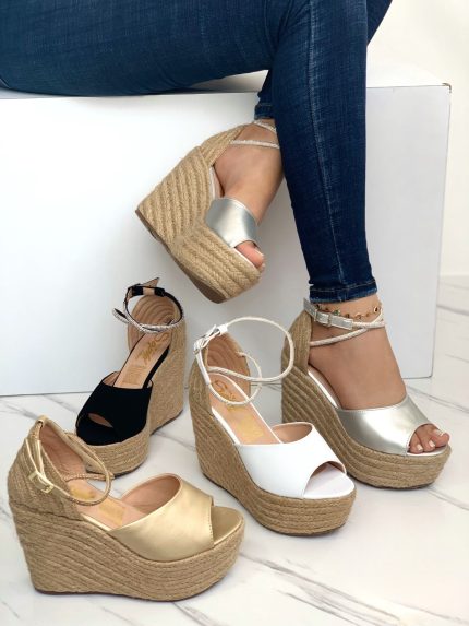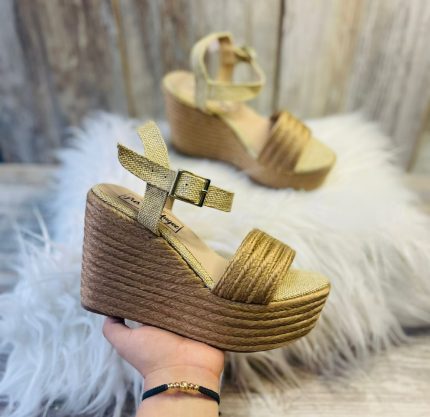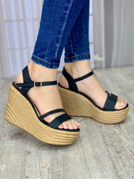 Sandalia plataforma con una abertura enfrente con una agujeta con hebilla posterior
