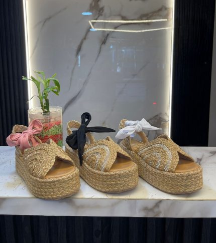 Sandalia plataforma con tres fajitas delanteras en forma de nudo y con dos fajas superiores con hebilla