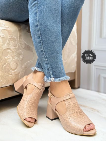 Tacones puntiagudos con detalles como manchas enfrente y faja posterior con el tacón grueso y cuadrado