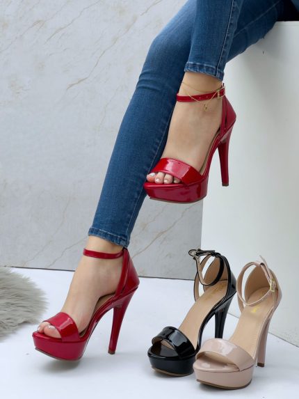 Sandalia tacón con una faja delantera con tacón alto y fino con una faja posterior y hebilla