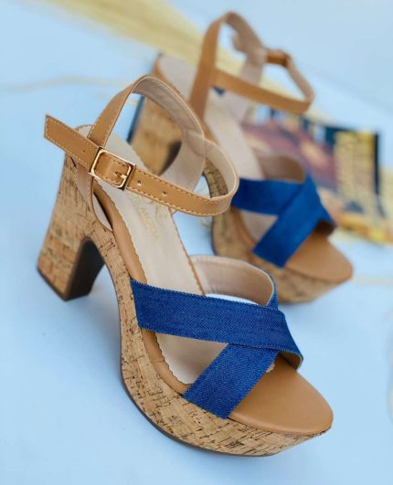 Sandalia tacón con dos fajas delanteras cruzadas con tacón pequeño y hebilla con faja posterior