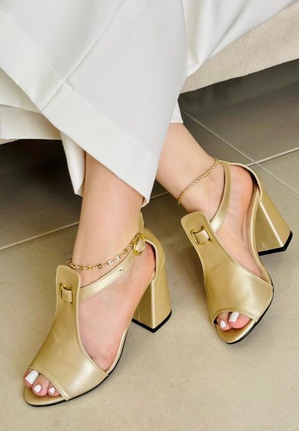 Sandalia tacón puntiagudos con una faja posterior y hebilla con un tacón pequeño
