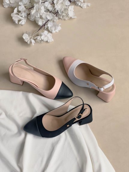 Tacones puntiagudos con una faja y hebilla posterior con un tacón semi grueso