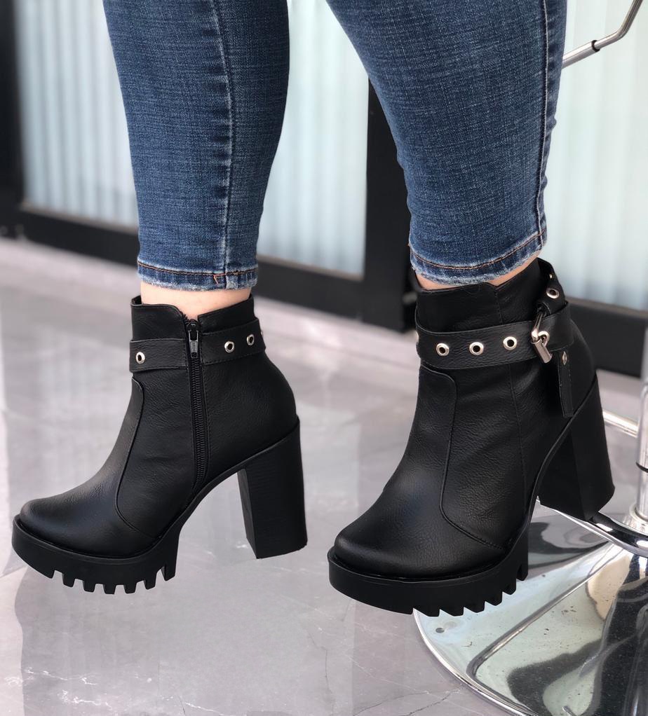 Botas altas gama importada tacón fino zipper y triple hebilla negro