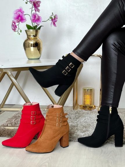 Botas altas gama importada tacón fino zipper y triple hebilla negro