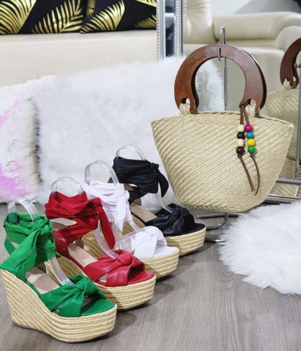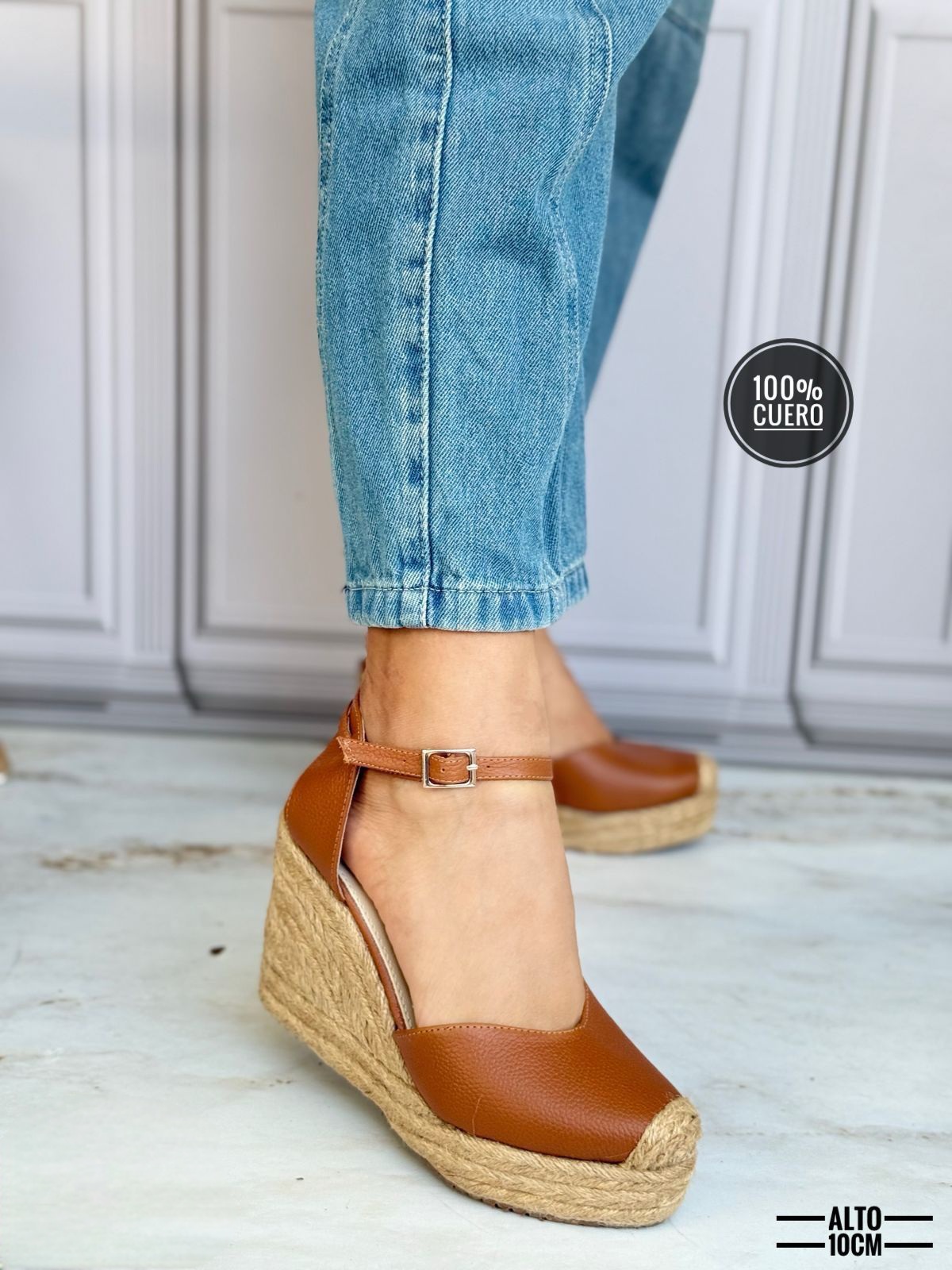 Sandalia plataforma de yute artesanal cerrados de enfrente con una cinta trasera hasta el tobillo