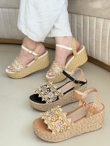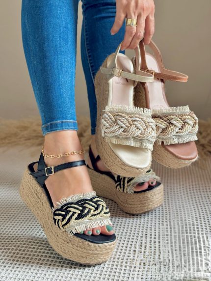 Sandalia plataforma de yute artesanal con dos fajitas traseras y doble hebilla